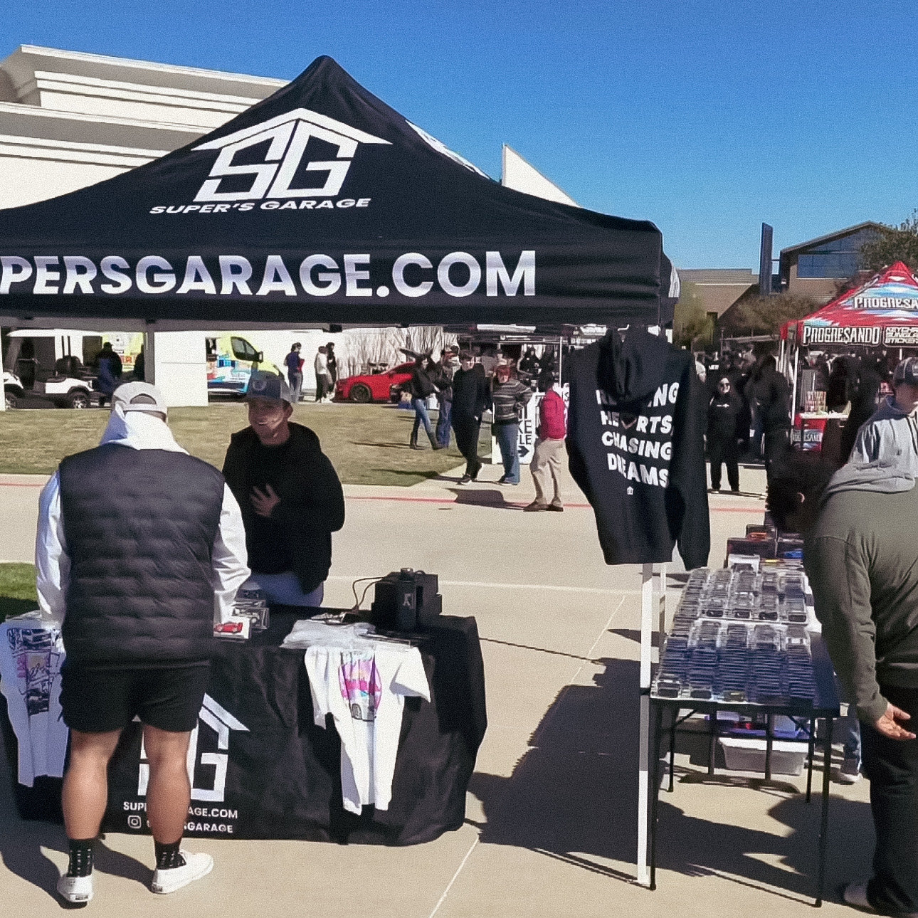 - May 2023: Kyle started attending car meets all over the Dallas / Fort Worth area with the Super's Garage booth, selling customizable car patches, meeting incredible people along the way, and becoming part of the local community.