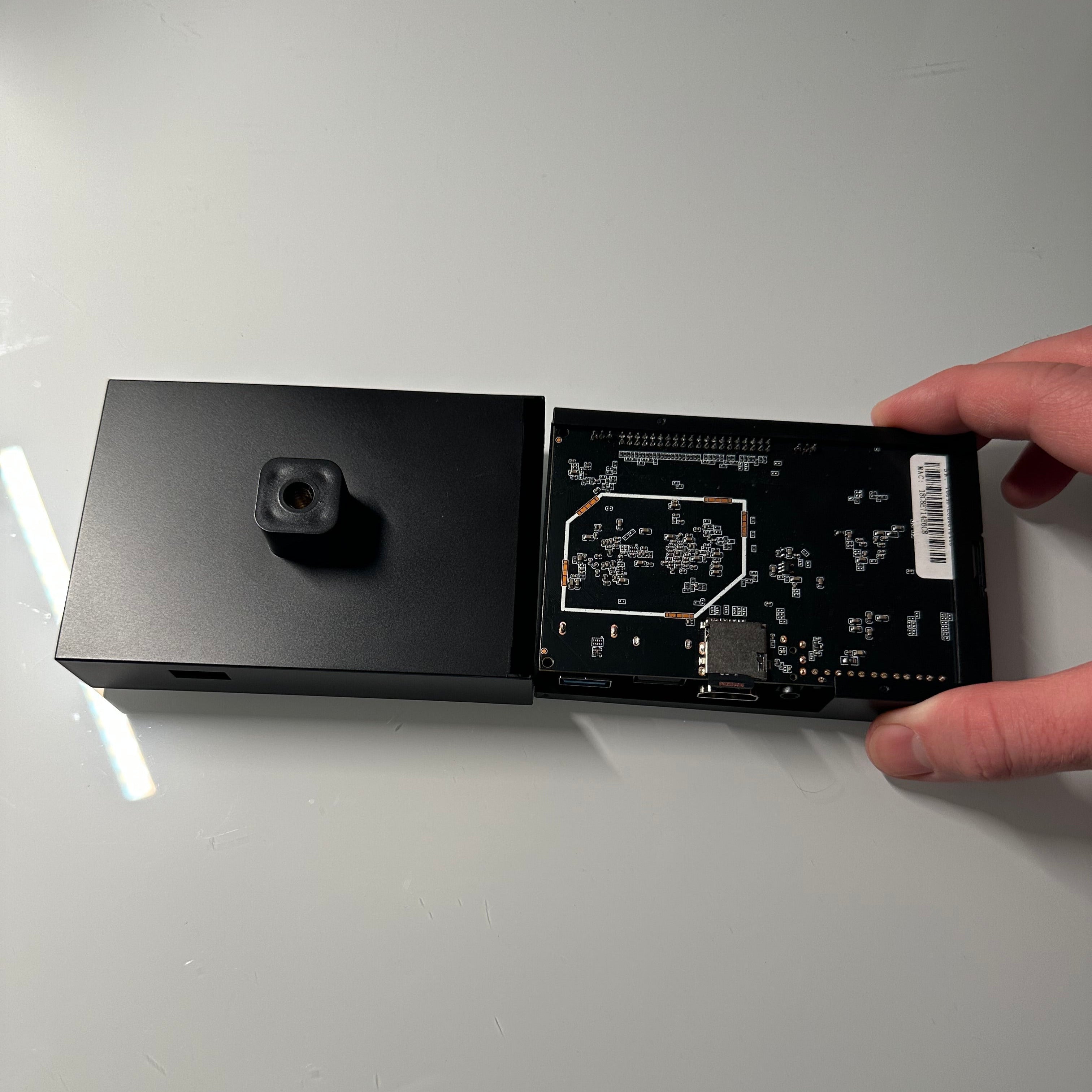 Slide your inner Super Gizmo assembly into its new case. Use the USB port hole on the case and USB port on the Super Gizmo as reference to make sure you're inserting it the correct way.