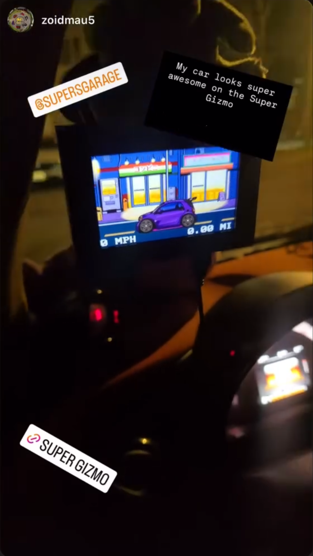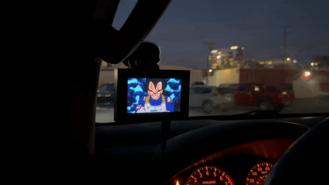 Upload any gif or video and watch your car come to life as the Super Gizmo RETRO animates it with how you drive, using real car data.